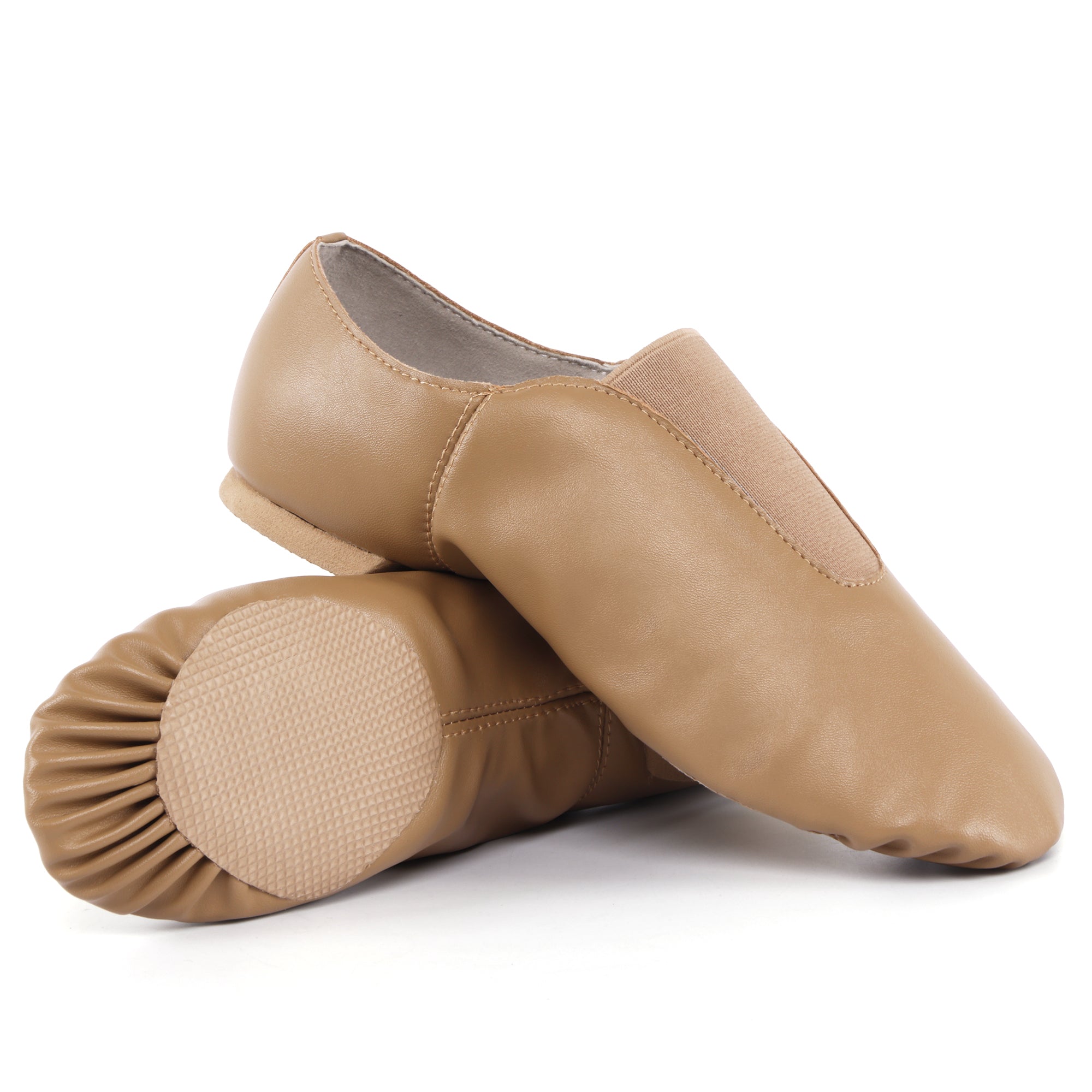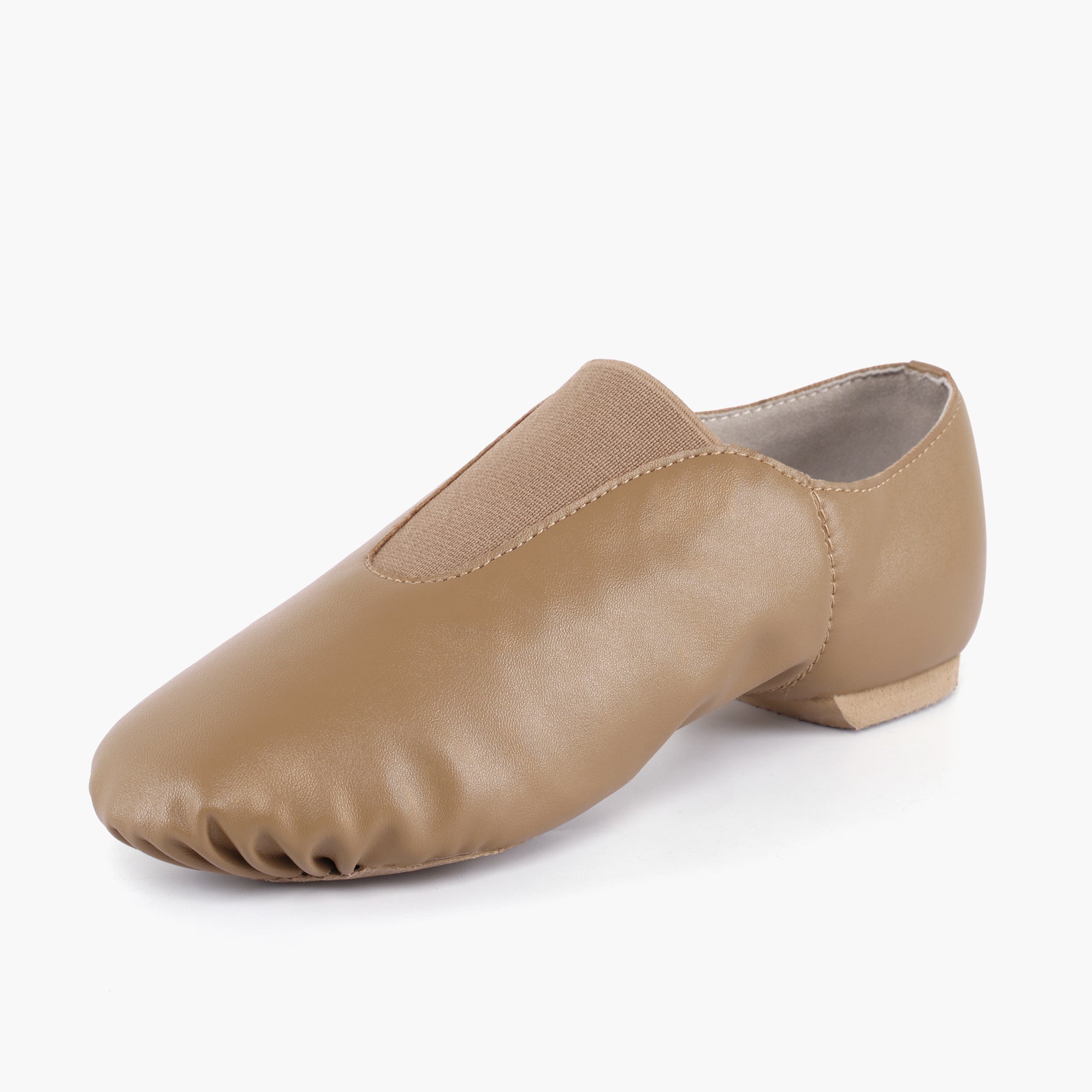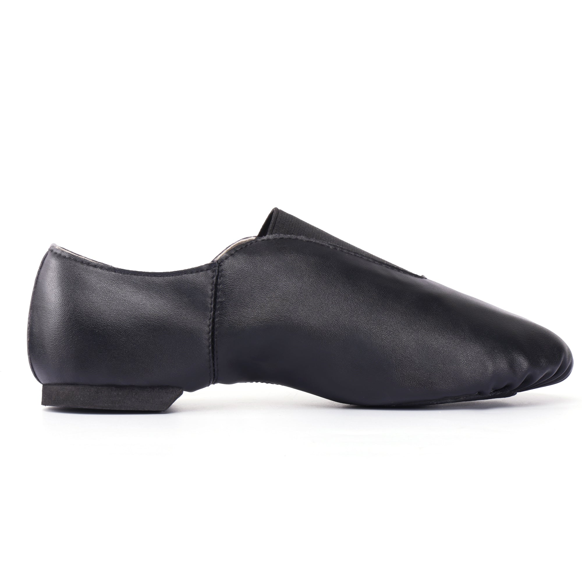Women’s PU leather slip-on jazz booties with elastic gore panels and a split sole for natural articulation. The PU upper keeps a smooth look and supportive feel, while a low heel and soft lining help maintain comfort through long sessions in the studio or on stage.
